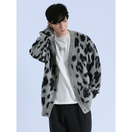 モヘアタッチ レオパード Vネック ニットカーディガン