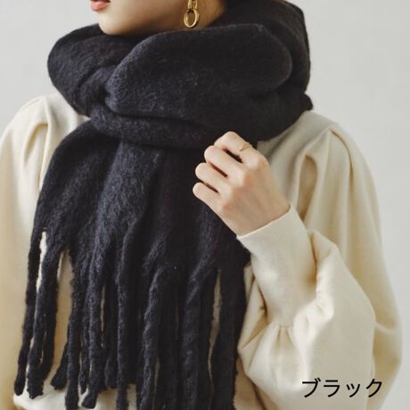 太めのフリンジがアクセントになり顔周りを華やかに見せてくれるので何枚も欲しくなりそう。