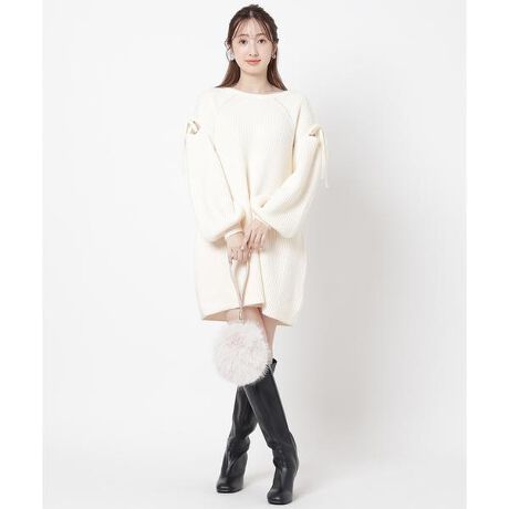 1枚でコーディネートが完成!オープンショルダーニットワンピース【Design】・程よい肌見せで女性らしい上品な色っぽさも兼ね備えたニットワンピース。・オープンショルダー部分のリボンがスウィートな印象を高めてくれます。・ボリューム感のある袖がロマンティック度を高めます♪・ぴったりしすぎないシルエットなのにスッキリと見えるようラインにこだわっているところもポイント◎・どんなアウターとも相性良いので日常使いに活躍します!・被り仕様。【Fabric】・もっちりした厚みのあるアクリル生地を使用。・ご自宅でお手入れが出来るのも嬉しいポイント♪・ホワイト、ベージュ、サックス、グレーの4色展開となります。【Care】手洗い可能