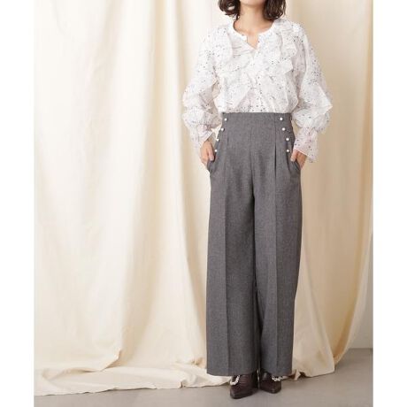 JILL by JILL STUART定番人気のワイドパンツをアップデート。今回はウエストからポケット口に沿って、小粒のパール調をつけてエレガントな印象に仕上げました。太ももから裾にかけてストレートラインを演出しつつセンタープレスを入れた、キレイなワイドシルエット。ウエスト位置を高めにしているので脚長効果が期待できます。ウエストの後ろはゴム仕様、パール調をポイントにできるように、トップスインがおすすめです。※撮影時照明の関係により、色味が違って見える場合がございます。またパソコン・スマートフォンなどの環境により、若干製品と画像のカラーが異なる場合もございます。予めご了承ください。商品の色味は、商品単品画像をご参照下さい。※商品画像はサンプルのため、色味やサイズ等の仕様に変更がある場合がございますので、予めご了承ください。