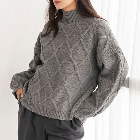 ダイヤケーブルハイネックニット