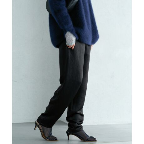 上品な光沢と落ち感のあるサテンパンツ。