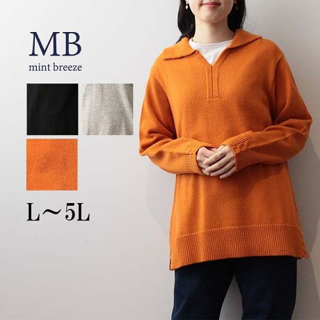【大きいサイズ】ミドルゲージ 襟付きニット