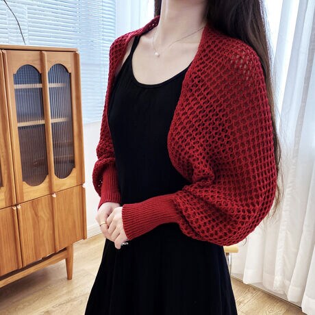 大人女性のフェミニンな透かし編みニットボレロカーディガンです