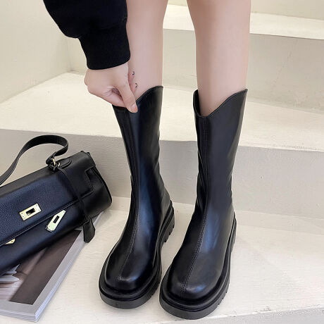 今季大注目フェイクレザーの柔らかな素材で高見えが叶えられるロングブーツです。