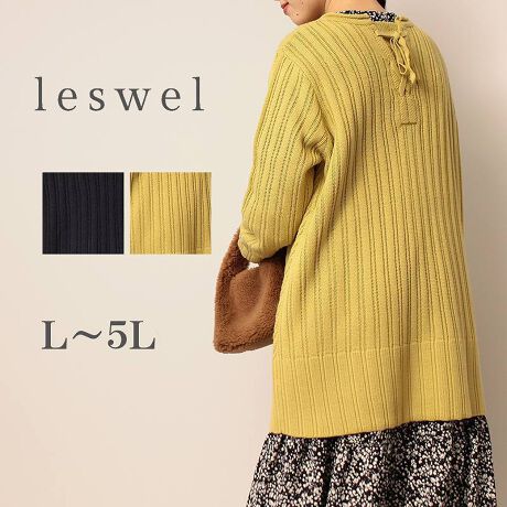 【大きいサイズ】バックリボン 柄編み ニット チュニック