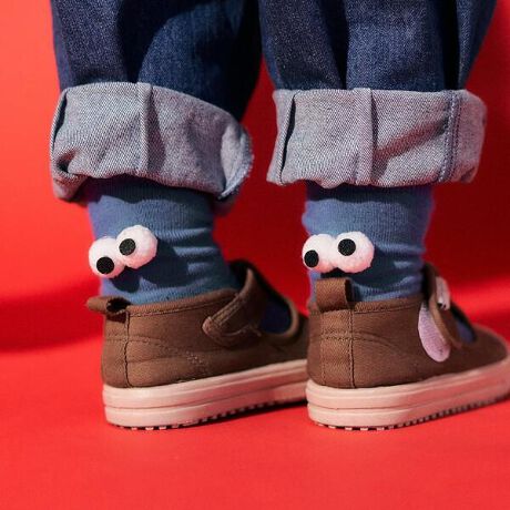 【セサミストリート オリジナルデザイン】今年らしいマルチボーダーの靴下。セサミストリートのタグがついているのがおしゃれ可愛い♪コーディネートのアクセントにぴったり◎