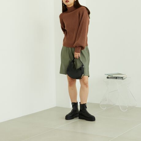 華奢見えが叶うボリュームスリーブにゆとりのあるハイネックを掛け合わせ、可愛い要素を詰め込んだ乙女心をくすぐるシルエット。
