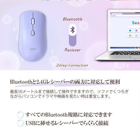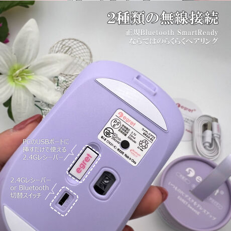 EGRET SweetiE おしゃれ&高機能な充電式ワイヤレスマウス、Bluetooth&レシーバー