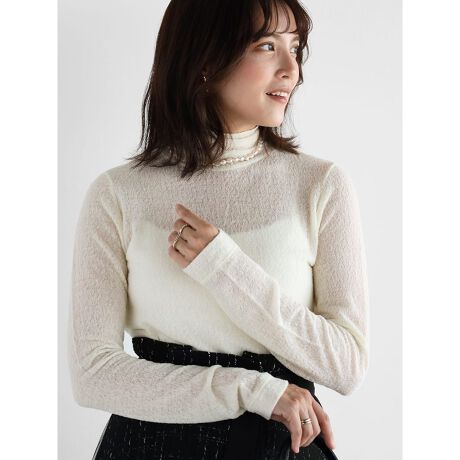 表面感のあるジャガードデザインと、程よい透け感が上品な印象に。