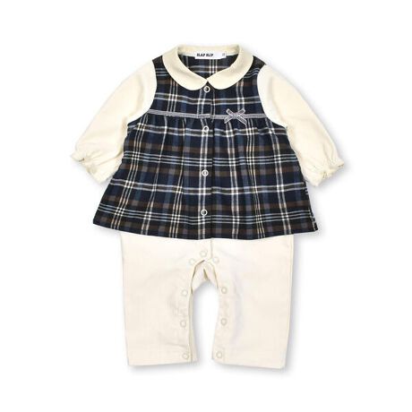 チェック柄がシーズンムードを高めてくれる長袖ロンパース。