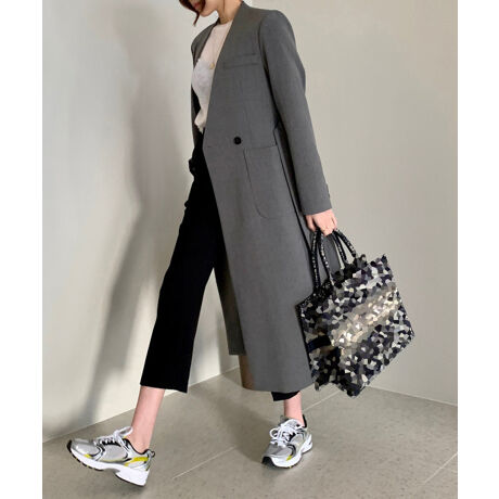 ノーカラーで首元をきれい魅せ、インナー問わず着るだけですっきりとした印象のロング丈レディースコート