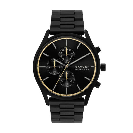 42mm径のケースにクロノグラフムーブメントを搭載したHOLST。ブラックのサンレイダイヤルに、ブラックのステンレススチールブレスレットを組み合わせました。ウォッチストラップは付け替え可能です。