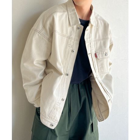 大人の暖かスタイル。裏キルティングルーズデニムジャケット