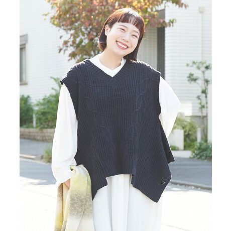 【大きいサイズ】たっぷりケーブルベスト