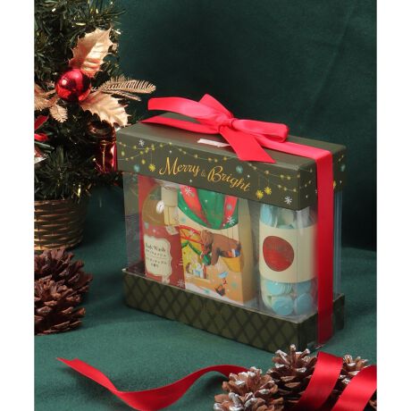 バスソルト、コンフェティ、ボディソープ、スポンジのボディケアセット。