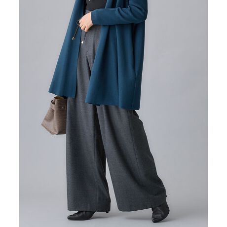 大人っぽい抜け感のある上質なウールワイドパンツ■デザイン素材のしなやかさを活かしたボリュームの、1タック入りのワイドパンツです。ゆったりとしたワイドシルエットなのでラインを拾いにくく、ウールのパンツでありながらウエストがドロスト仕様なので大人っぽい抜け感を感じられるデザインです。ウエストにゴムを入れた快適な着心地も魅力です。■素材紡績以外は国内で加工した素材になります。世界でも優れた品質を誇るオーストラリアメリノウールを100%使用し、ポリウレタンを撚糸することでストレッチ性を出しています。 膨らみと柔らかさを出し、きちんとした見え感で着て頂くと暖かみがあります。■同素材アイテムテーパードパンツ(PRWMSW0516)スカート(SKWMSW0516)
