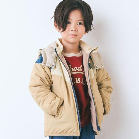 ワッペン付き配色切り替え中わたジャケット(90~130cm)