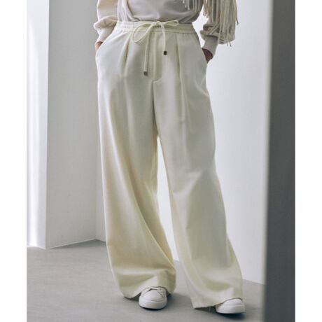 大人っぽい抜け感のある上質なウールワイドパンツ■デザイン素材のしなやかさを活かしたボリュームの、1タック入りのワイドパンツです。ゆったりとしたワイドシルエットなのでラインを拾いにくく、ウールのパンツでありながらウエストがドロスト仕様なので大人っぽい抜け感を感じられるデザインです。ウエストにゴムを入れた快適な着心地も魅力です。■素材紡績以外は国内で加工した素材になります。世界でも優れた品質を誇るオーストラリアメリノウールを100%使用し、ポリウレタンを撚糸することでストレッチ性を出しています。 膨らみと柔らかさを出し、きちんとした見え感で着て頂くと暖かみがあります。■同素材アイテムテーパードパンツ(PRWRSW0516)スカート(SKWRSW0516)