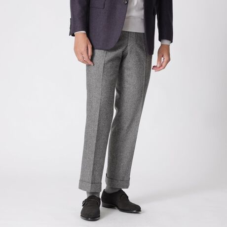 クラシックな印象のホームスパン素材を使用したスラックス。