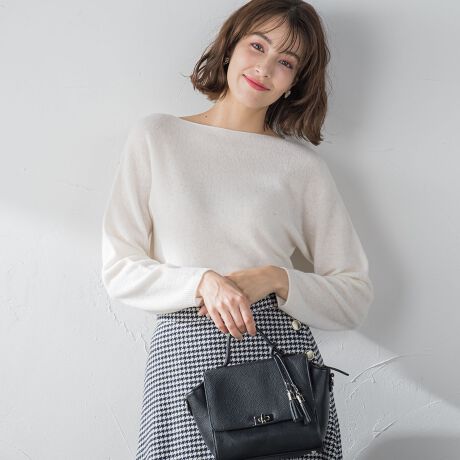 首元は抜け感のあるボートネックで春先にも1枚で着れるニットです。