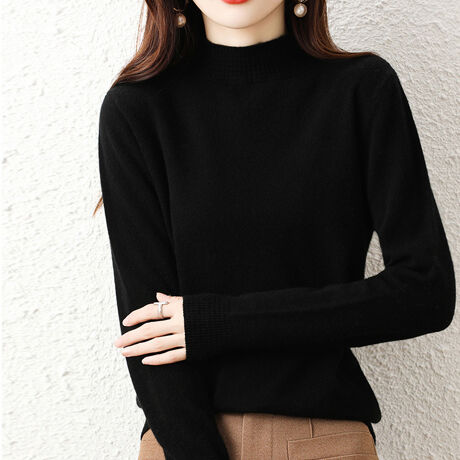 プチハイネックで女性らしい印象に仕上げたニットトップス