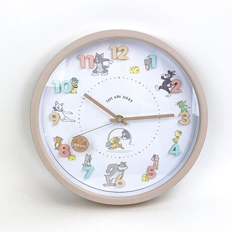 人気定番アイテム《アイコンウォールクロック》にナチュラルカラーがかわいいトムとジェリーの新デザインが登場です♪ 秒針の音がカチカチならない静かな連続秒針を採用。 文字は見やすい立体的なデザイン。子供部屋などにおすすめです。