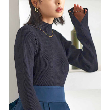 身体のラインを拾いすぎず程よくフィットし、ちくちくしない肌触りも嬉しいポイント。リブ編みの細かな縦線で縦のラインを強調し身体のラインを綺麗に見せてくれます。