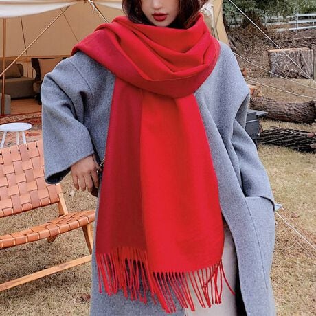 シンプルでスタイリッシュなフリンジ付きデザイン。1枚でオシャレの幅が広がる大判配色ストール