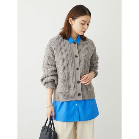 ざっくりと編まれたケーブル編みがシーズンらしさを演出するカーディガン。