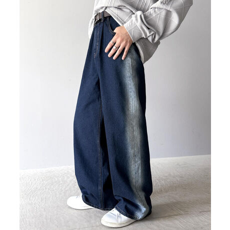 サイドのブリーチ加工されたラインが抜け感漂う、ルーズシルエットが魅力のブリーチデニム。