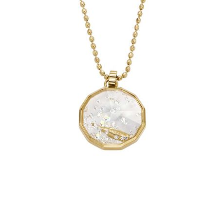 ワイルドなウィリー・ウォンカの世界をモチーフにした美味しさあふれる新作コレクション、Willy Wonka x Fossil。ウィリー・ウォンカの「発明室」をイメージしたスペシャルエディションのペンダントネックレス。ゴールドトーンのステンレススチールと美しいクリアグラスを組み合わせました。