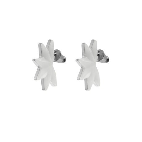 シルバートーンのステンレススチールとマザーオブパールのコントラストが映えるフープピアス。両面をホリデーシーズンにふさわしいスターのフォルムに仕上げました。ポストタイプ。