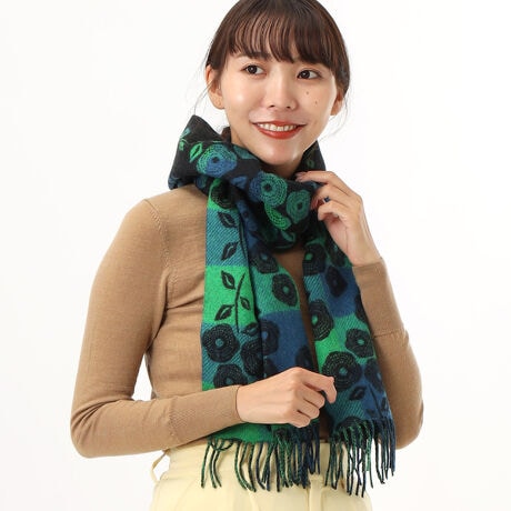 アナ スイ23秋冬のパターンをギンガムと組み合わせたマフラーです。アシッドなカラーがコーデにアクセントをプラスします。ふっくらとした巻き上がりになるリバーシブル仕立て。表はギンガムベースに単色のお花があしらわれたデザインになっており、裏面は無地ベースにギンガム柄のお花があしらわれたデザインになっております。(手洗い可能)
