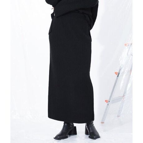 程よい厚みと温かさのあるリブが心地よく、シルエットが美しいIラインのニットスカート。