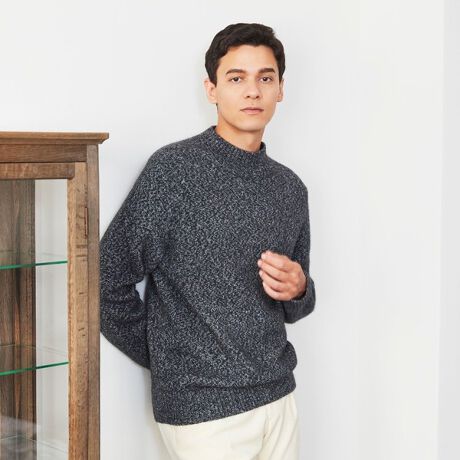 コットンウールアルパカの三者混糸を使用した高級感あふれるモックネックセーター。