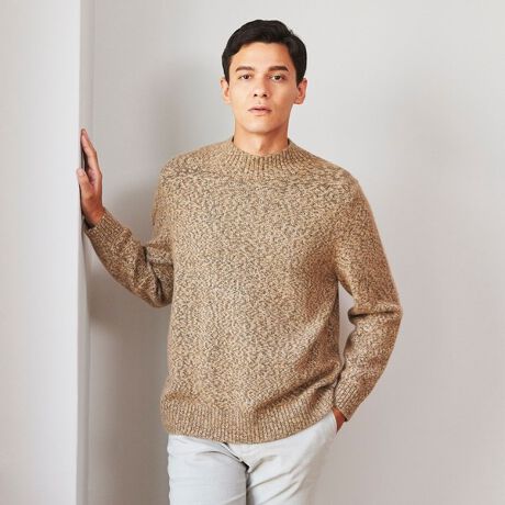 コットンウールアルパカの三者混糸を使用した高級感あふれるモックネックセーター。