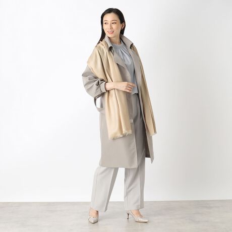 ちょうどよい中肉の厚で、秋冬シーズンの防寒だけでなく春夏の冷房対策にもお使いいただけ、年間を通して活躍する薄手のシルクカシミヤストールです。55cm幅で羽織ったり巻いたりもできる汎用性の高いアイテムで、一枚あると重宝します。シンプルな無地のデザインながらも光沢のある素材感で、オケージョンにもお使いいただけます。年代を問わず使えるのでプレゼントにもおすすめです。