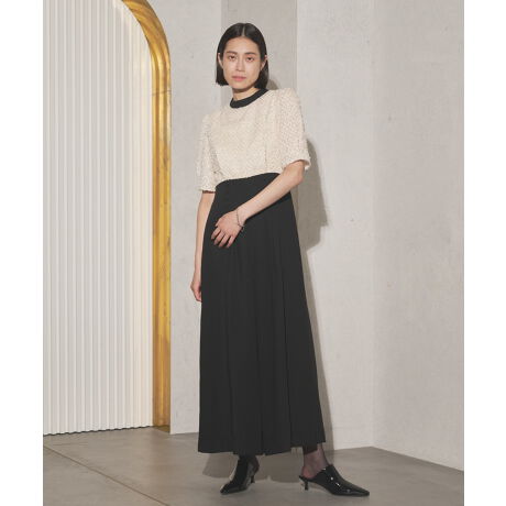 上下で素材とカラーを変えたデザイン性溢れるコンビネゾンドレス。