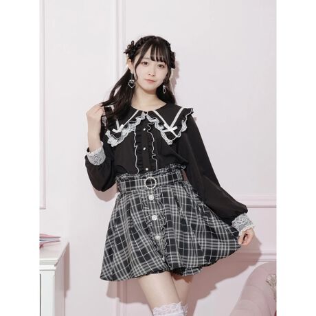 存在感のあるセーラーカラーが可愛らしさを演出するフリルブラウス。