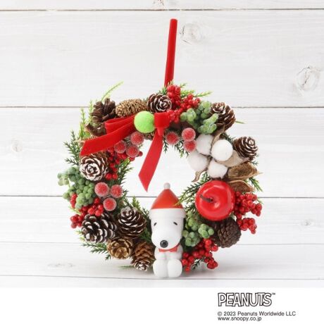 [型番:41077034]【デザイン】天然素材も使ったスヌーピーのリースです。