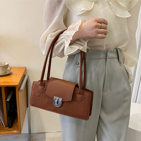 クロコダイル模様の型押しが施されており、きれいめでオトナっぽい韓国DESIGNのエコレザーバッグ