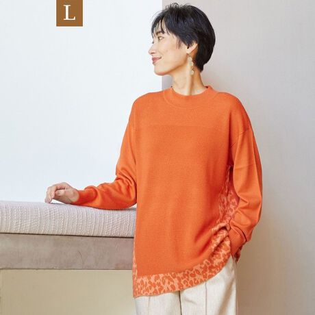 【L】【ウォッシャブル】レオパードコンビハイネックニット