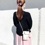 シンプルで使いやすいミニショルダー+ミニポーチのセットアイテム。滑らかでどこかしっとりとした素材感が特徴的。ショルダーは合わせやすいシックなカラー、定番ロゴは金箔押しで表現しました。ミニウォレットやスマホがゆったり入るサイズ感です。