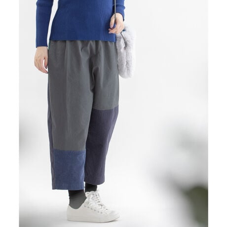 ・しっかりとしたツイル起毛とヘリンボーンの近似色に、秋らしいコーデュロイを組み合わせた異素材ミックスのパンツ。