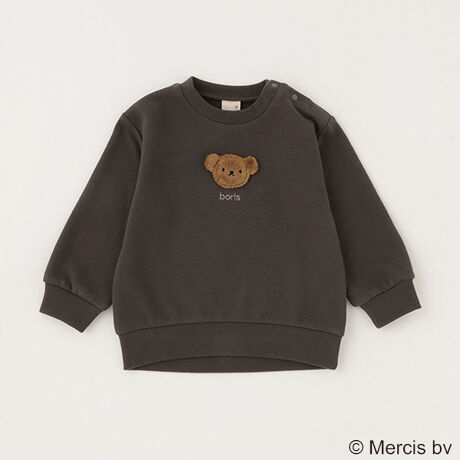 立体的なマスコットのワンポイントが可愛いWEB限定のトレーナーです。アイボリーとラベンダーはミッフィー、ベージュとチャコールはボリスをデザインしました。裏毛仕様で肌当たりが良く、着心地も快適。きょうだいでリンクコーデが楽しめる豊富なカラーバリエーションをご用意しています。内側にはお名前を記入できるタグつき。※80、90サイズのみ肩開き【透け感】透けない【生地の厚さ】普通【伸縮性】あり【裏地】なし【ポケット】なし