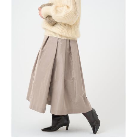 さり気なく入ったスリットは、タックの重なりで隠れつつも動くと抜け感のあるディティールに。