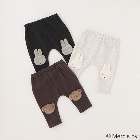 お膝のパッチが可愛いパンツです。お尻まわりにゆとりを持たせてオムツをはいていても窮屈感のないはき心地に仕上げました。ウエストゴムで簡単に着脱できるのもうれしいポイント。ロンパースに重ね着したり、上下セパレートのお洋服になったらトップスと合わせたりと幅広く活躍します。パッチのモチーフはECRU(キナリ)とチャコールがミッフィー、モカ茶がボリスです。【おすすめの着用時期は秋冬シーズン】【透け感】透けない【生地の厚さ】普通【伸縮性】あり【裏地】なし【ポケット】なし【アジャスター】なし