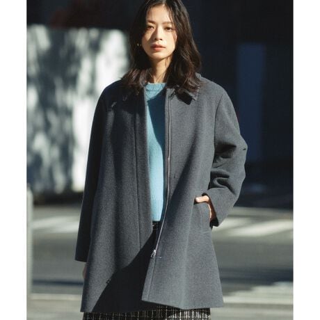 ■デザインクラシックなステンカラーコートをモダンにデザインした1枚。立体的なフォルムで少し体から離れるAラインシルエットで横から見た佇まいが特に素敵です。サイジングやフォルム、ディテールでクラシカルになりすぎないバランスにしています。端正な襟が顔周りを華やかにみせ、フロントのファスナー使いがデザインの締めポイントになっています。多彩なトップスの上にすっきりと羽織れ、シンプルながら気映えも着心地も抜群な 1 枚です。カジュアルな着こなしはもちろん、キレイ目なアイテムとの合わせも◎。