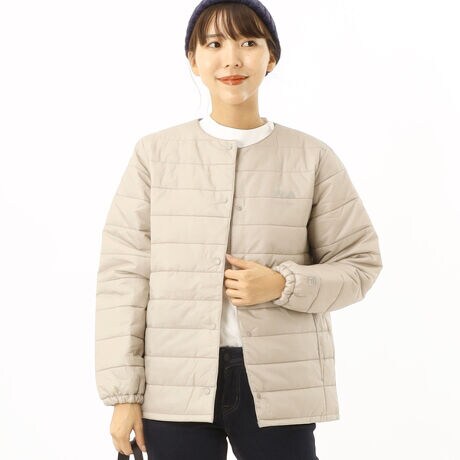 [型番:443619]軽量の中綿素材を採用したノーカラージャケットです。表生地には撥水加工を施しています